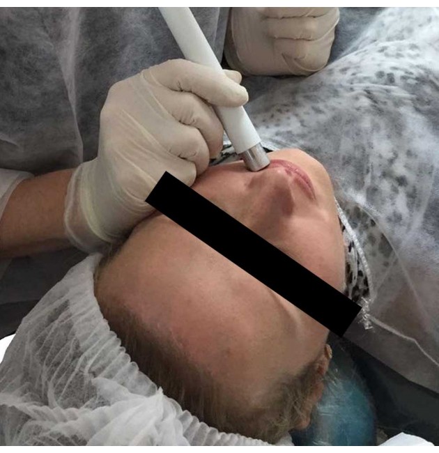 - Encoste a ponta da Caneta Skin Cooler na pele durante alguns segundos (5 a 7 segundos) para promover uma analgesia temporária, retire e instantaneamente realize o procedimento.
